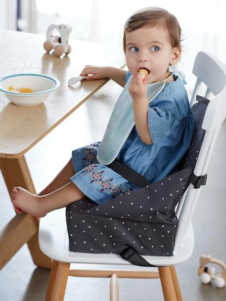 Booster seat for chair in 80% polyester, 20% cotton, water-repellent.