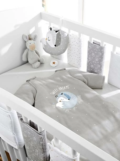 Here’s an innovative, safe and cute cot bumper! Easy to use, ties to sides of the cot with touch ‘n’ close fastening tabs to avoid bumps and to ensure air circulation. This cot bumper is delivered in a package with 10 items.