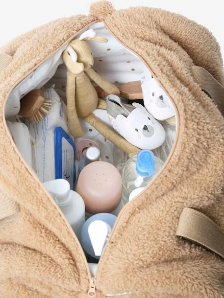 Baby Roll changing bag in plush fabric, lining in cotton, padding in polyester.