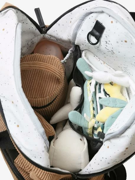 This is the ideal changing bag for adventure-loving parents: a backpack with several pockets and accessories that make it easy to move about with baby! In very soft and modern corduroy for a trendy look!