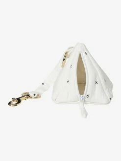 A lovely pyramid-shape pouch to keep the child’s (precious) dummies. Featuring a cord with snap hook to attach to a bag, the pushchair, etc…