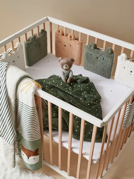 Green Forest breathable cot bumper in polyester sherpa, light cotton canvas, padding in polyester.