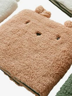 - 3 animal panels with 3D ears, on the front: sherpa with embroidery / on the back: striped light cotton canvas