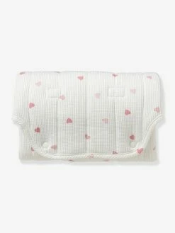 Here’s a lovely travel special changing pad that folds into a pouch and fits easily in the baby changing bag! When unfolded, its removable towelling is perfect for nappy changing! The heart print and the honeycomb fabric add an adorable touch when its nappy-changing time π