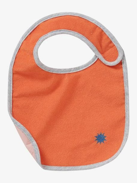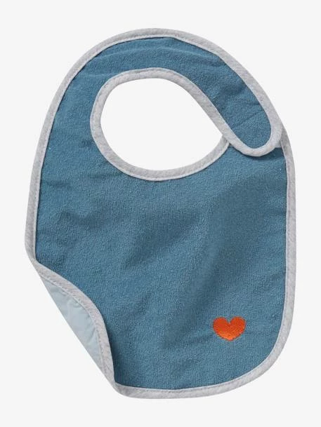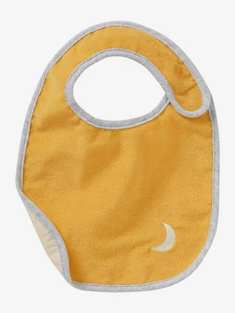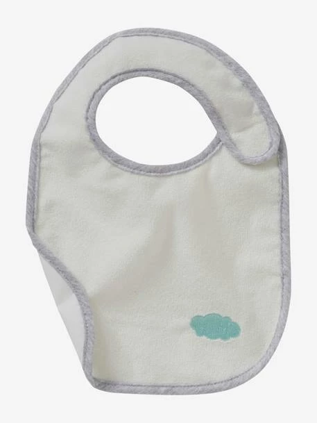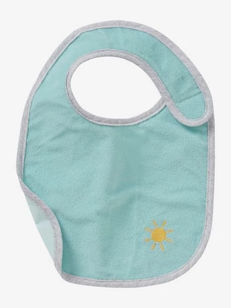 Pack of 5 bibs in terry cloth: 50% cotton and 50% polyester and PVC.