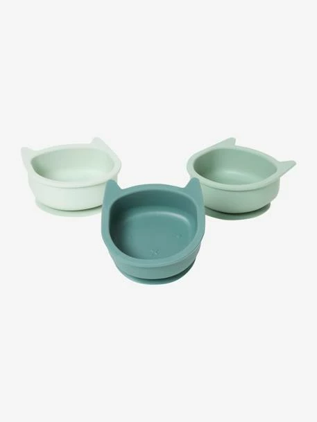 A set of 3 lovely cat bowls in trendy colours so that meal time is party time for baby! In unbreakable, silent silicone. Each bowl has a suction cup on the bottom so it sticks to the surface in front of the child and there are no worries about it slipping onto the floor.